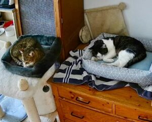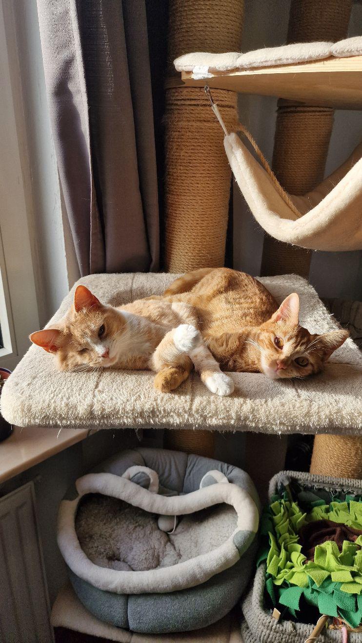 Hier der Text der derzeitigen Dosenöffner: Meine Lebensgefährtin und ich brauchen dringend Hilfe bei der Vermittlung zweier junger Kater, die wir als Notfall von Freunden übernommen haben und aufgrund eigener drei älterer Katzen nicht dauerhaft behalten können. Leider besteht, seitdem die jungen Kater da sind, viel Stress und Spannung in der Gruppe. In Absprache mit den ursprünglichen Haltern suchen wir daher nun ein geeignetes, liebevolles Zuhause für die Beiden.